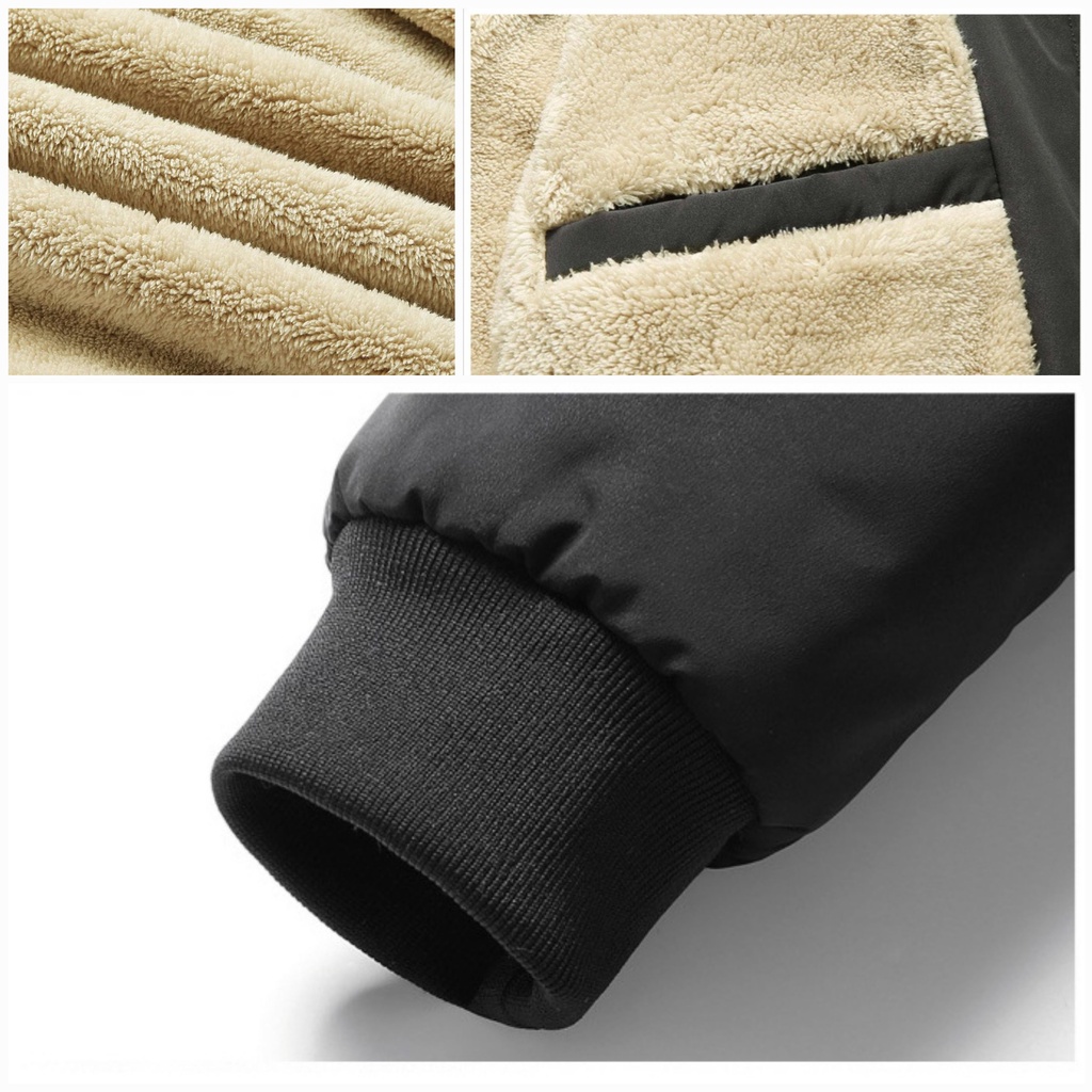 Áo khoác nam lót lông cừu cổ đứng loại dày mặc mùa đông siêu ấm, vải ngoài cản gió, cản bụi, kháng nước nhẹ