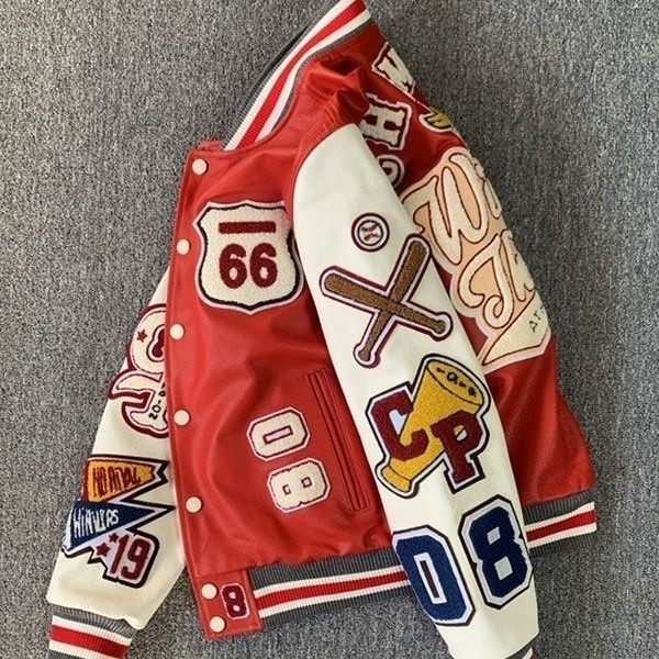 Áo Da Lớp Đầu Mẫu Mới Thu Đông Áo Bóng Chày Áo Khoác Da Nam Phong Cách Sành Điệu Áo Khoác Ngắn Màu Trắng Thêu Công Nghiệp Nặng Instagram