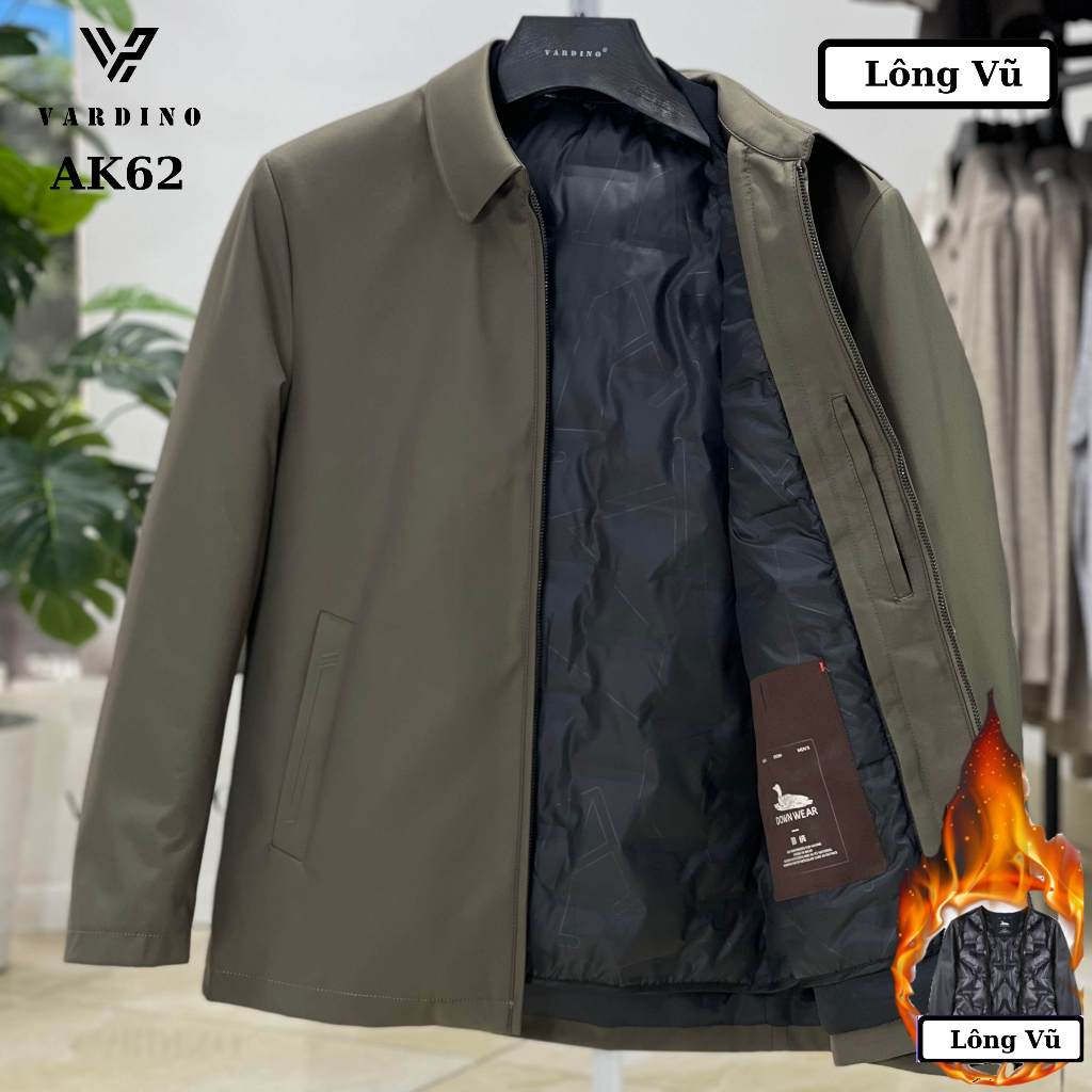 Áo khoác nam trung niên VARDINO lót lông vũ tháo rời hàng hiệu có 2 túi trong dáng suông và séc chống kẹt AK58 AK62 Thời Trang Center