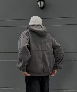 Áo khoác nỉ hoodie zip nam nữ local brand unisex bigsize nỉ bông dày dặn dây kéo có mũ to cặp đôi 350gsm xám Pandax Race