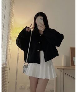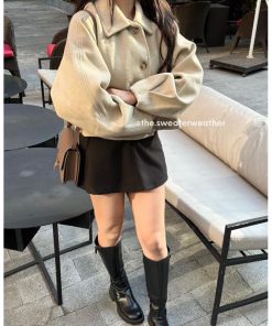 ÁO KHOÁC NỮ, ÁO KHOÁC DẠ ÉP HÀN QUỐC DÁNG CROPTOP TAY PHỒNG HÀNG LOẠI 1 (video/sẵn) Thời Trang Center