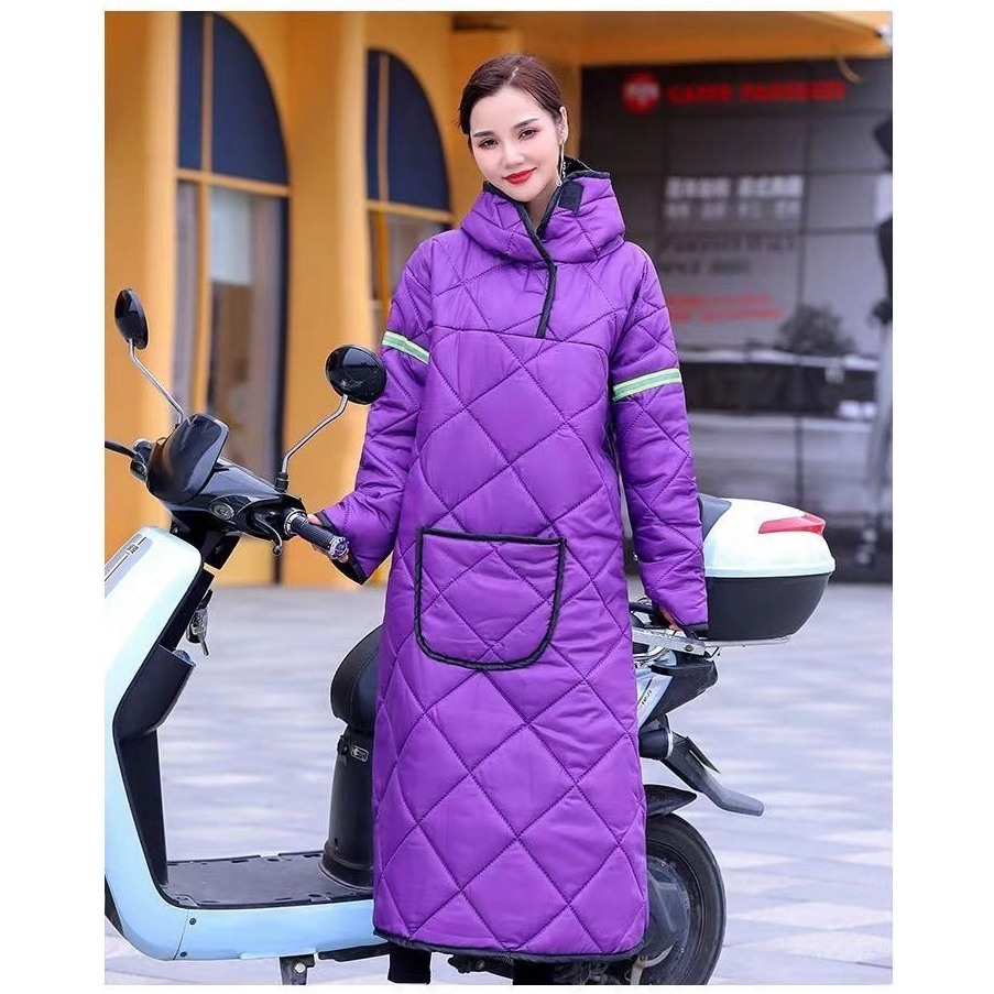 Áo khoác phao nữ đi xe máy SAMIE hoạ tiết quả trám, áo khoác nữ mùa đông dáng dài giữ nhiệt cực ấm