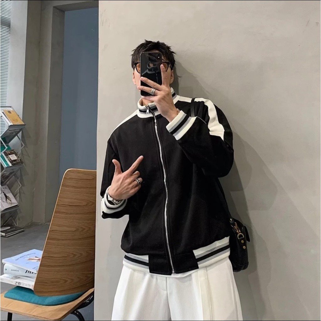 Áo Khoác Thể Thao Nam Nữ Vải Nỉ Dày Áo khoác Bomber phối soc tay mẫu hót 2023 Thời Trang Center