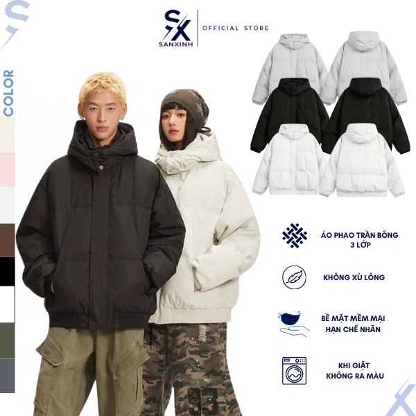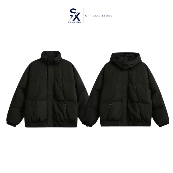 Áo phao Basic có mũ tiện lợi chất dù chần bông 3 lớp dày dặn chắc chắn form rộng nam nữ – SXMAP09 Thời Trang Center