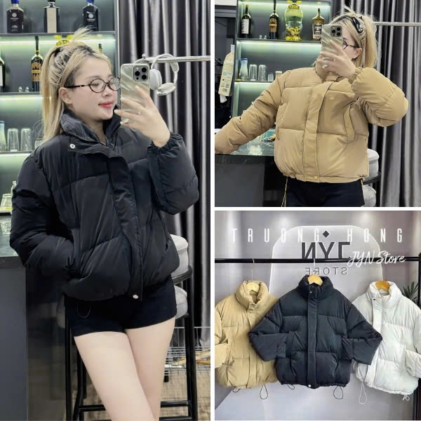 ✅ Thông tin sản phẩm: Áo phao nữ cổ cao form croptop, áo khoác phao trơn có dây rút chất liệu nhung lỳ dày dặn ấm áp