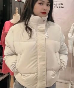Áo phao nữ cổ cao form croptop, áo khoác phao trơn có dây rút chất liệu nhung lỳ dày dặn ấm áp Thời Trang Center