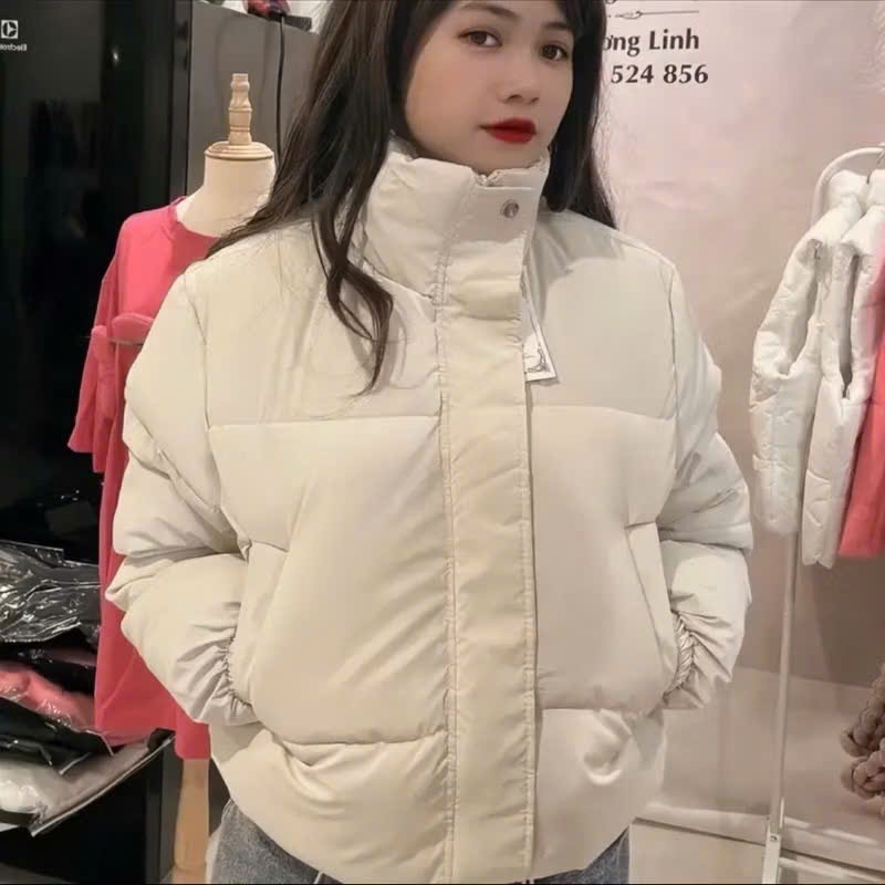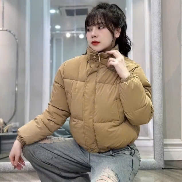 Áo phao nữ cổ cao form croptop, áo khoác phao trơn có dây rút chất liệu nhung lỳ dày dặn ấm áp