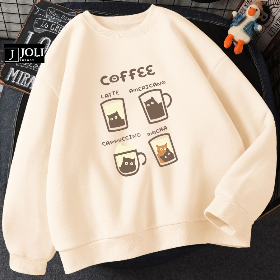 Áo Sweater COFFEE Nam Nữ By JOLI Unisex Chất Nỉ Lót Bông Form Rộng Thời Trang Center