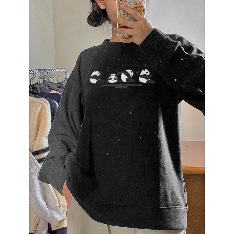 Áo Sweater Nam Nữ Trơn Form Rộng Nỉ Bông Cotton Unisex, Áo Khoác Hoodie Relach Basic Oversize Trend Thu Đông -Panda Ngủ