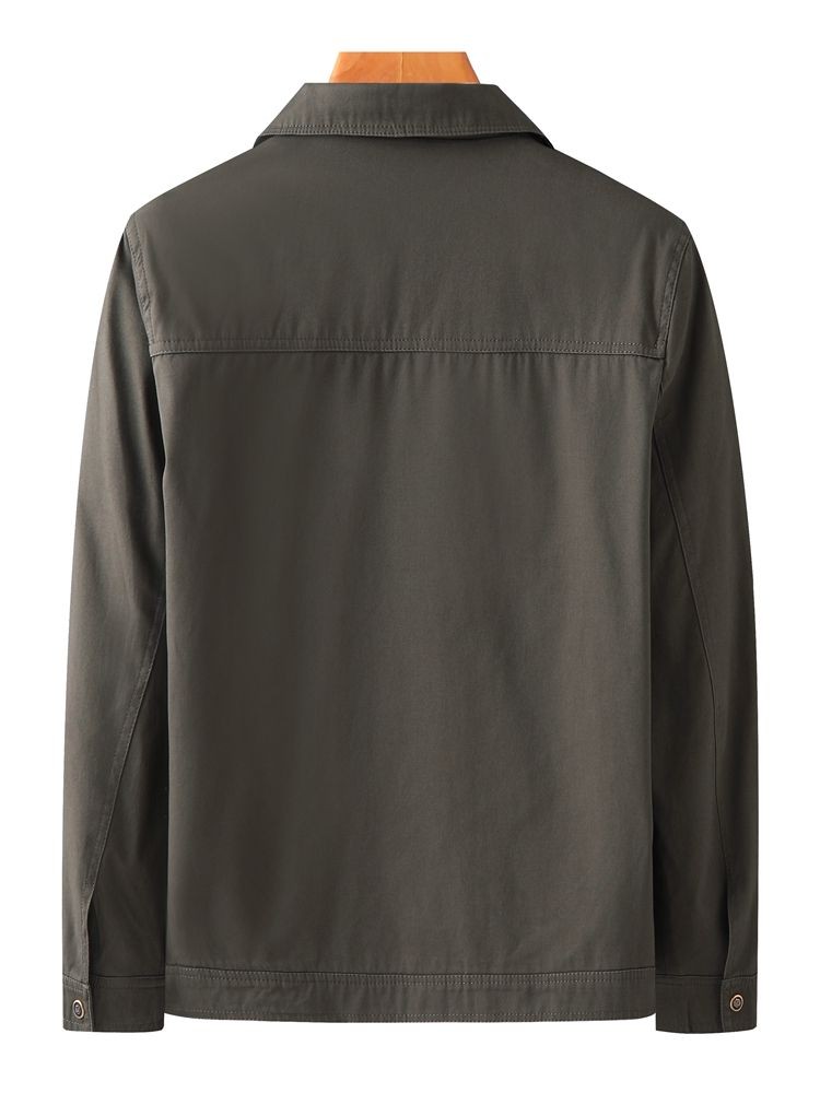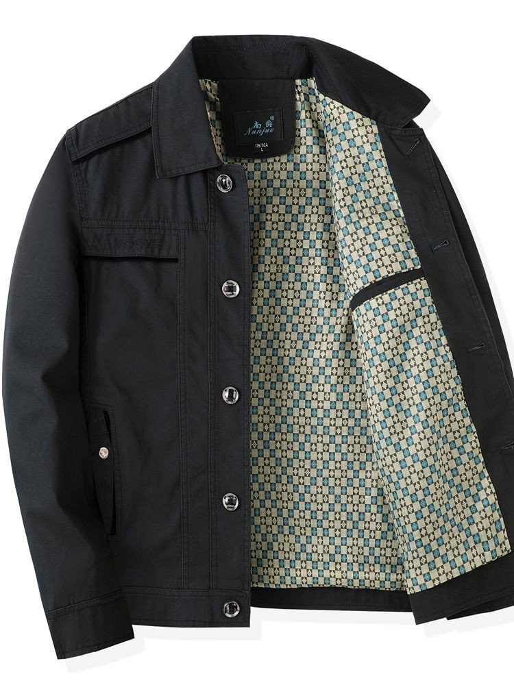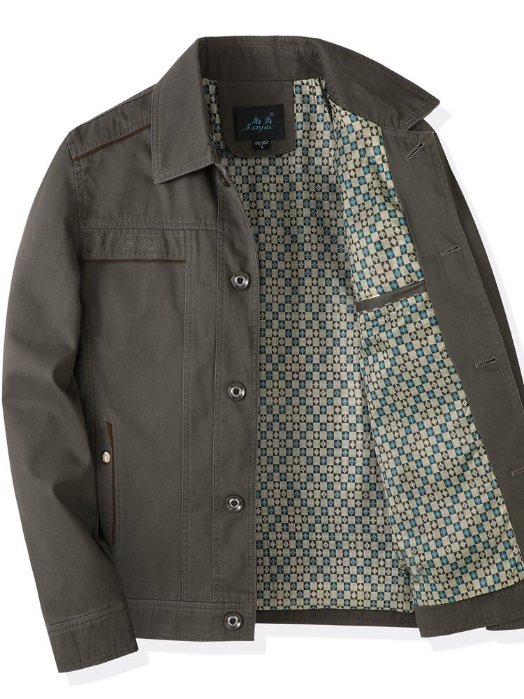 Bố Nguyên Chất Cotton Áo Khoác Xuân Thu Nam Trung Niên Mùa Thu Ve Áo Nút Xuống Áo Khoác Nam Trung Niên Và Người Cao Tuổi Thời Trang Center