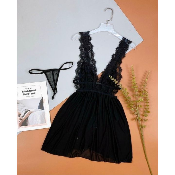 Che tên sp, tặng chip, Váy ngủ ren 2 dây bản to xẻ sau sexy
