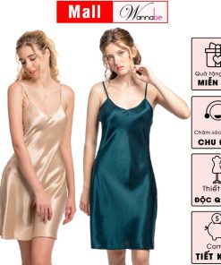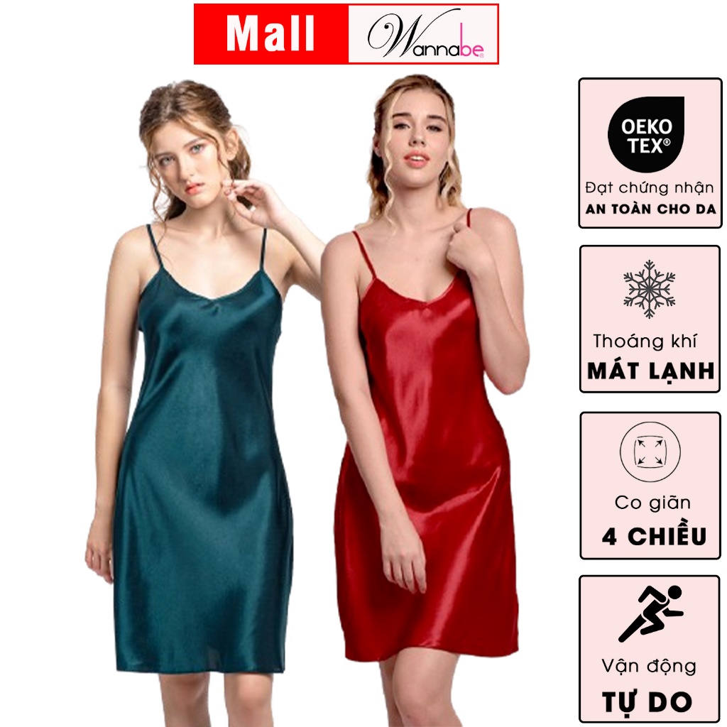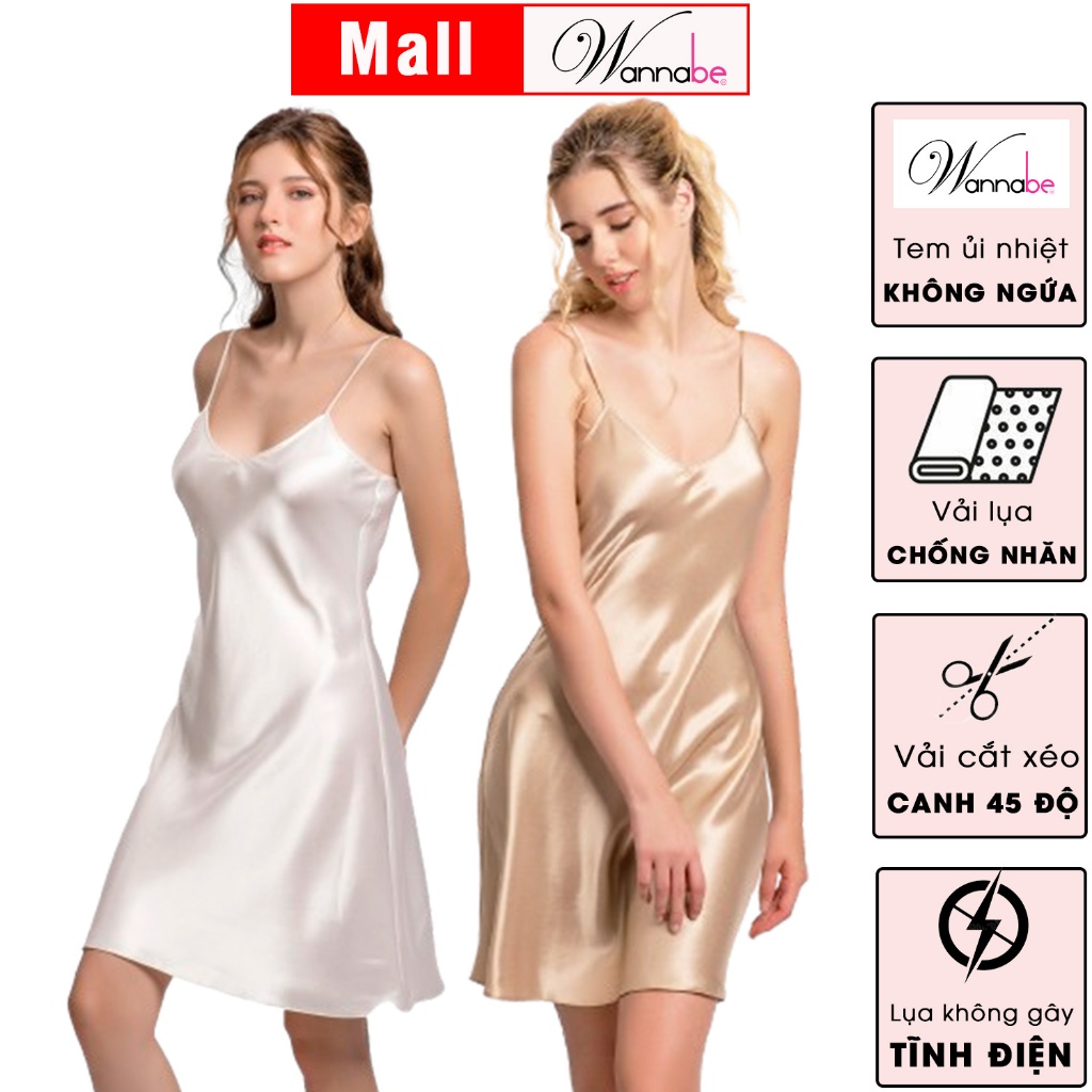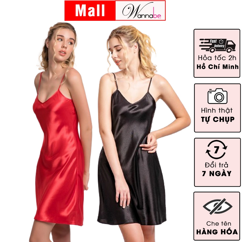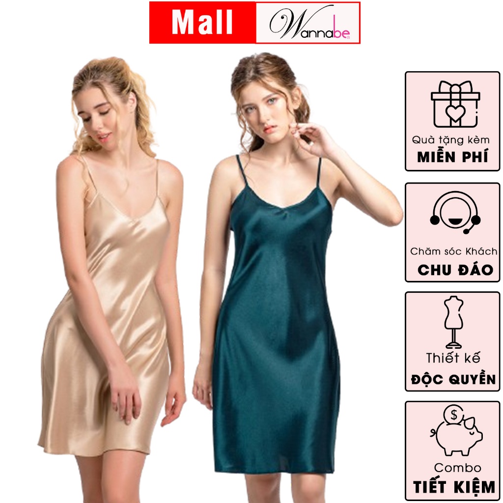Combo 2 đầm ngủ lụa WANNABE váy ngủ tối giản 2 dây êm dịu trẻ trung chăm sóc làn da giấc ngủ DN612 Thời Trang Center