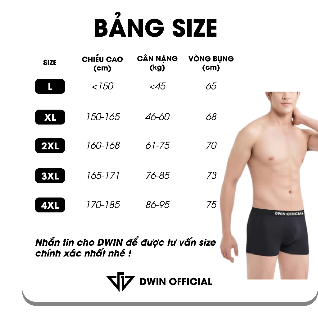 -Size 4XL: 1m70-1m85 (86-95kg)Hướng dẫn sử dụng sịp đùi Dwin :