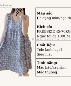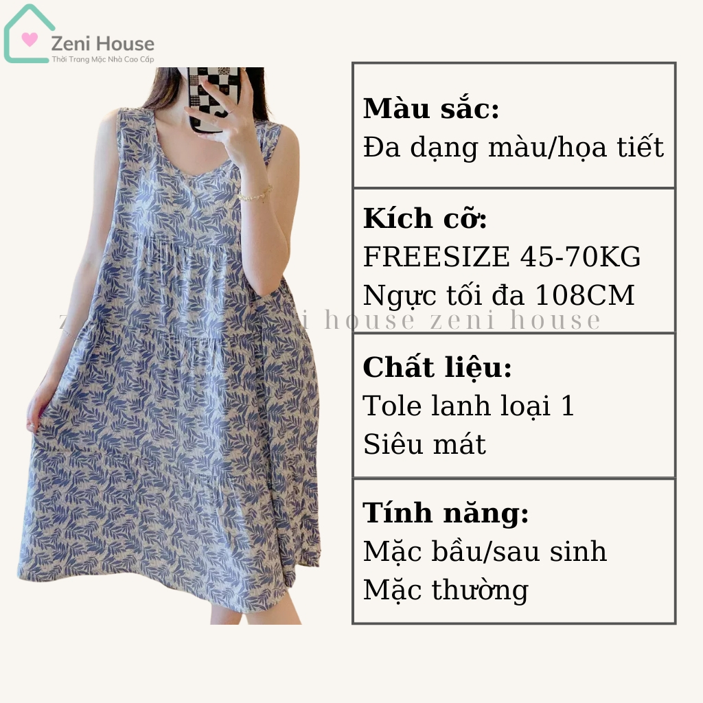 Đầm lanh bigsize, đầm bầu tole mặc nhà ZENI váy ngủ dễ thương thoải mái kiểu dáng ba lỗ siêu mát Thời Trang Center