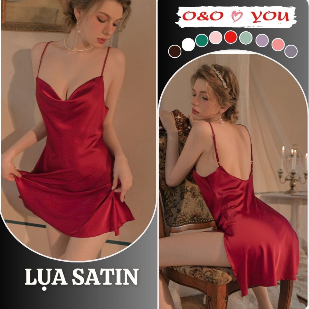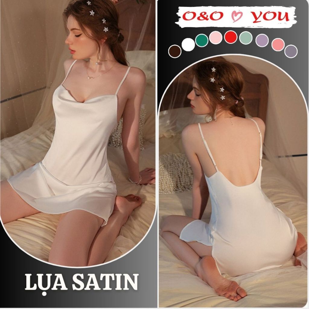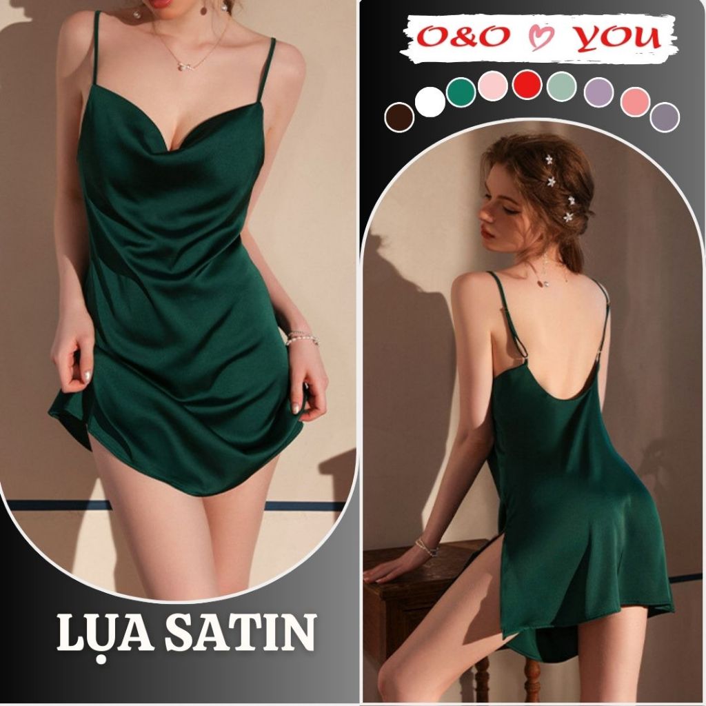 Đầm ngủ 2 dây cổ đổ liền thân xẻ tà 1 bên chất liệu lụa Satin cao cấp, váy ngủ quảng châu A25588 O&O Thời Trang Center