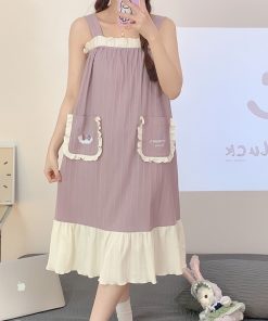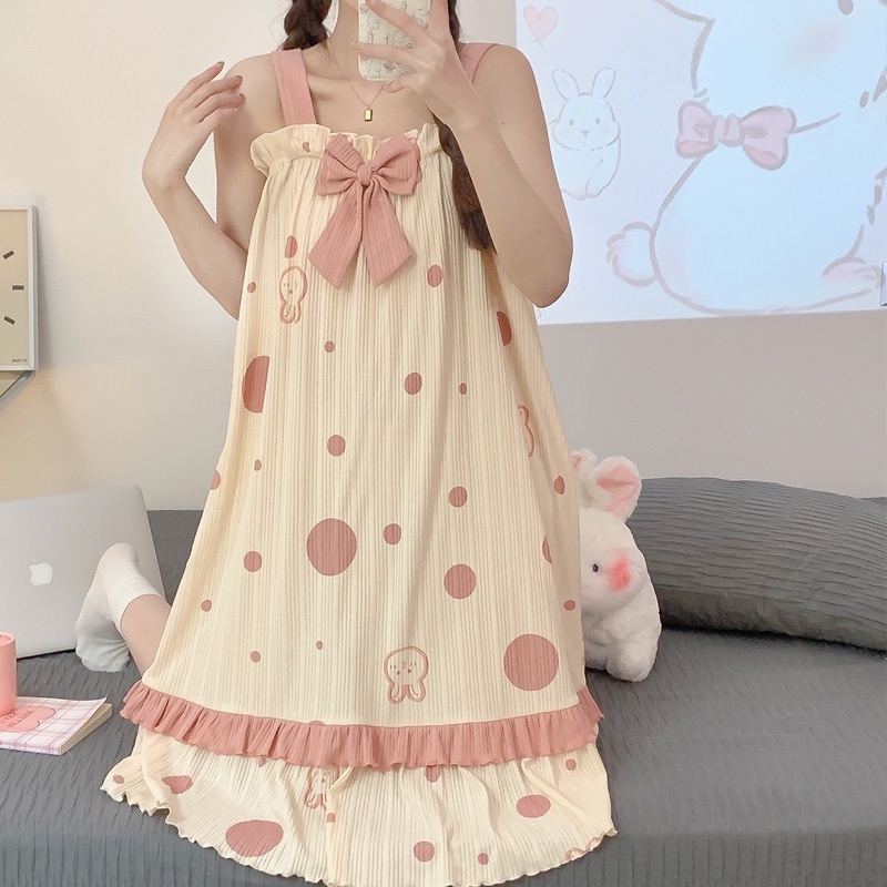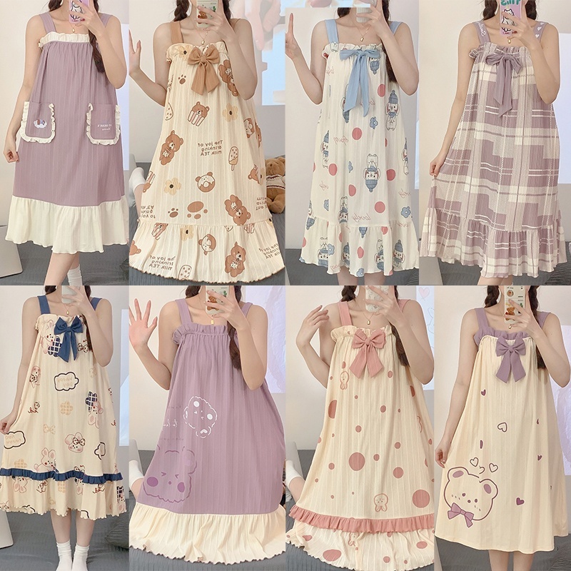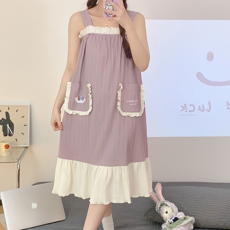 Đầm ngủ cotton tay ngắn phong cách công chúa thời trang mùa hè cho nữ Thời Trang Center
