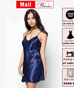 Đầm ngủ lụa chính hãng mềm mịn WANNABE váy ngủ xẻ tà đính 4 nơ một bên sườn áo thật quyến rũ DNS12 Thời Trang Center