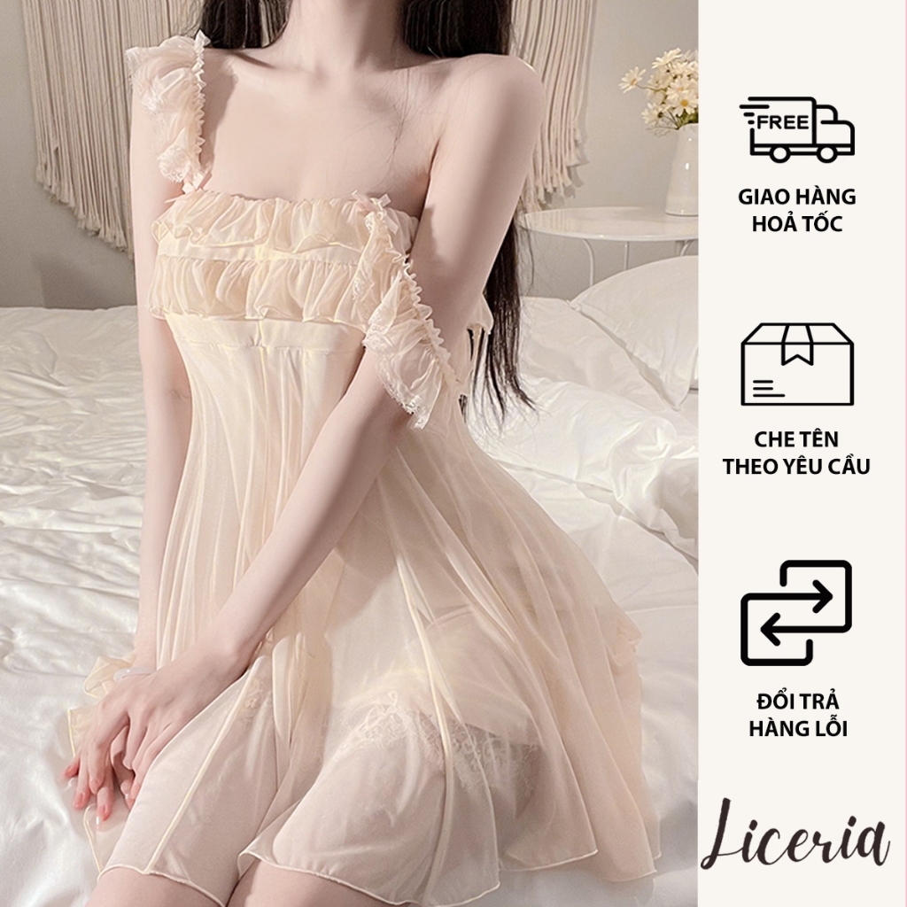 Đầm Ngủ Lụa Hai Dây LICERIA A40 Ren Voan Mềm Mát. Thời Trang Center