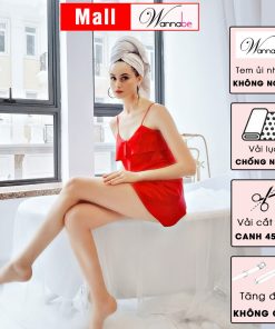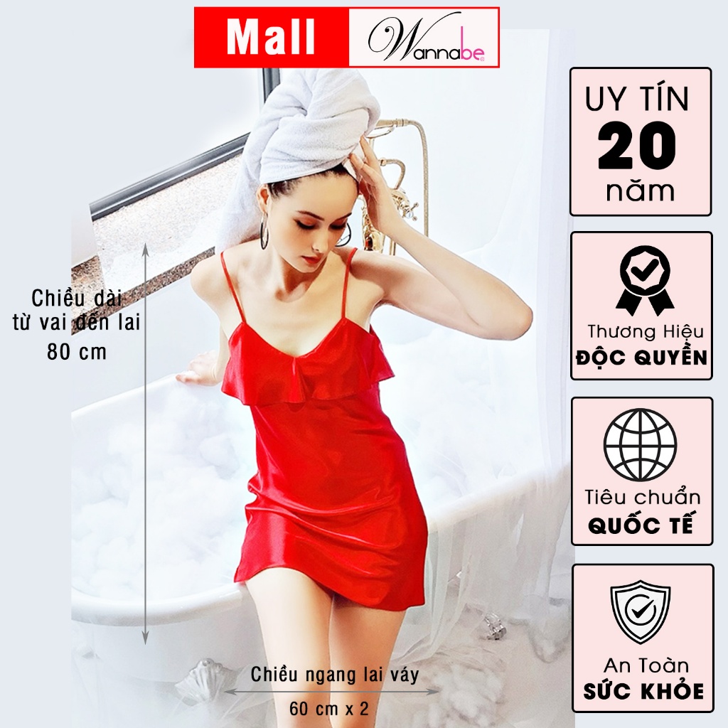 Đầm ngủ phi lụa WANNABE DNS05 váy ngủ 2 dây chữ a phối bèo ngực che ti tài tình dù thả rông núi đôi