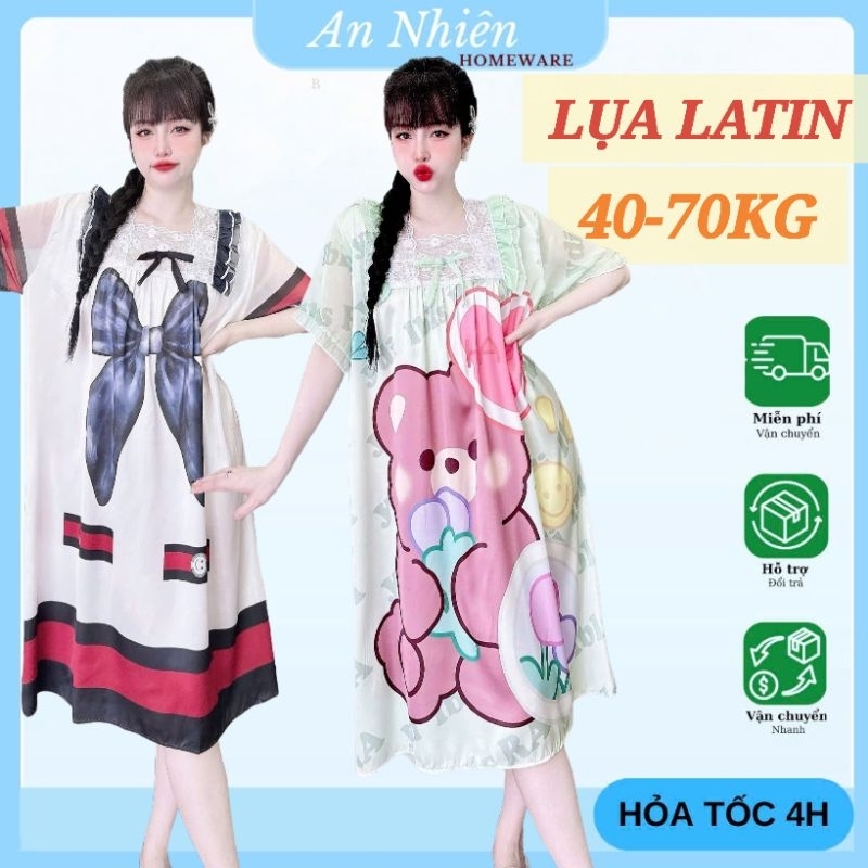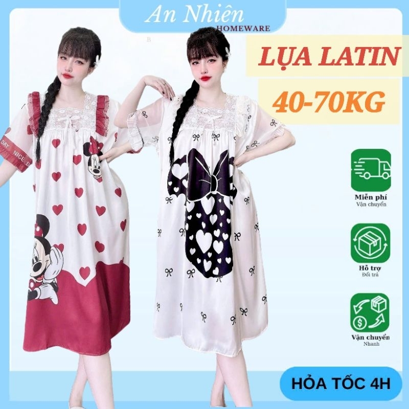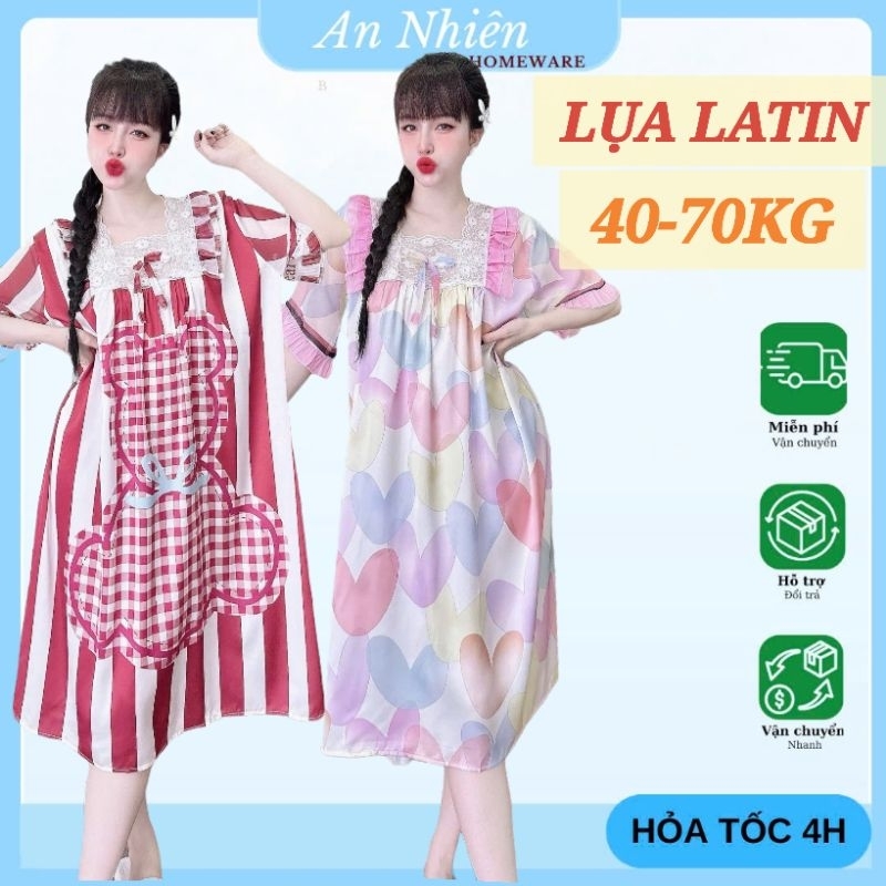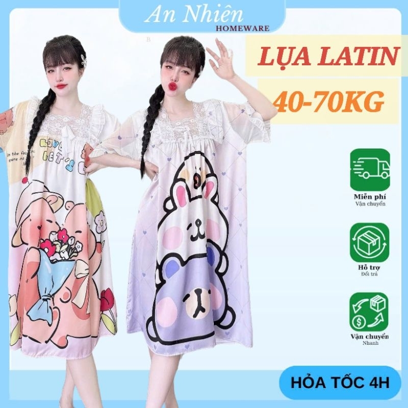 Đầm váy ngủ tiểu thư cổ vuông lụa xước phối ren mềm mịn mát thoải mái – bầu bí bon chen được