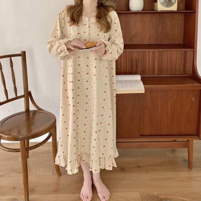 Sẵn Đồ ngủ instagram Hàn Quốc váy ngủ phong cách công chúa ngọt ngào nổi tiếng trên mạng dài tay mùa thu cho nữ váy liền dáng dài-thoitrangcenter