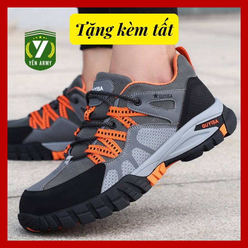 Shop Yến Army chuyên phân phối các mẫu giày bảo hộ lao động chính hãng, đạt tiêu chuẩn bảo hộ lao động Châu Âu (EEC). Đây là 1 trong những mẫu giày bảo hộ lao động cao cấp của hãng GUYISA với phong cách thể thao, năng động, trẻ trung, kiểu dáng hàn quốc rất đẹp mắt.