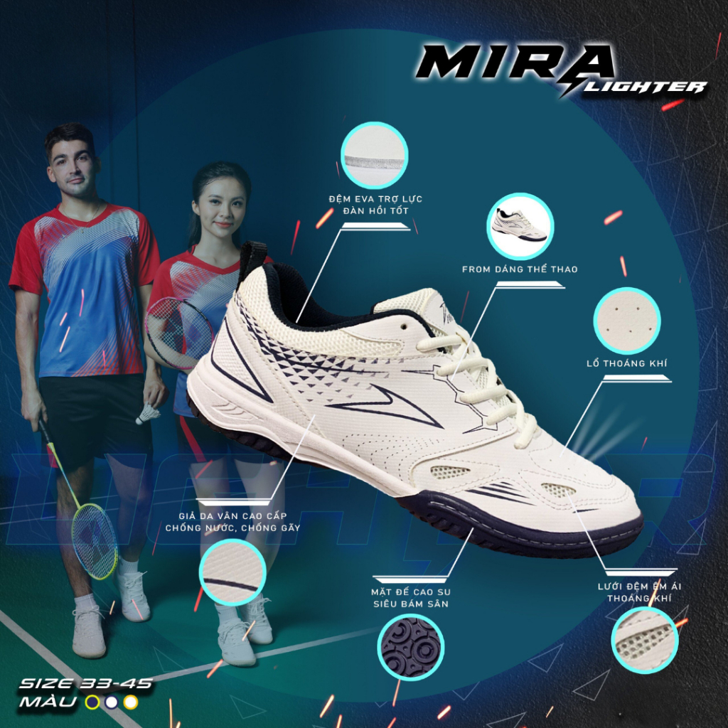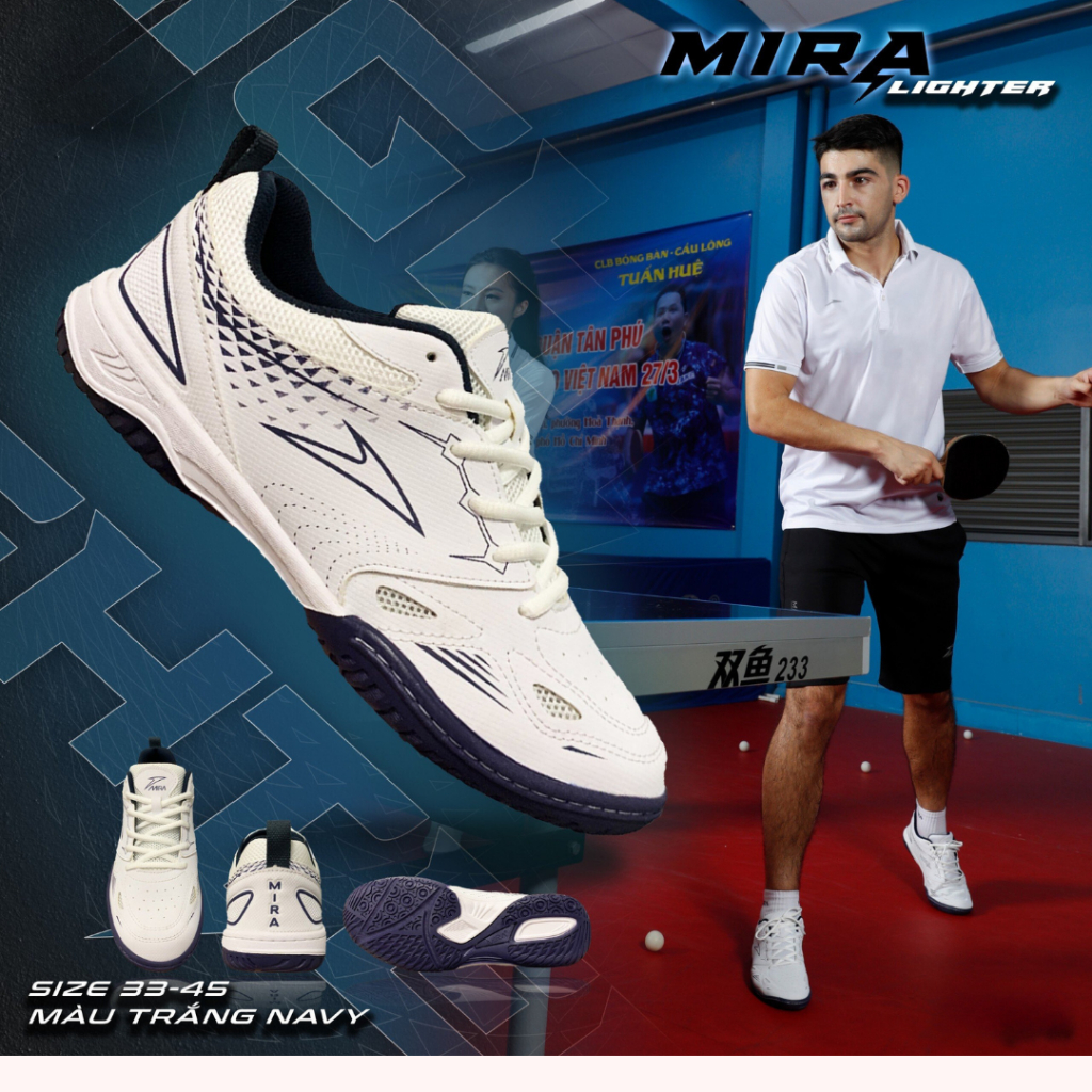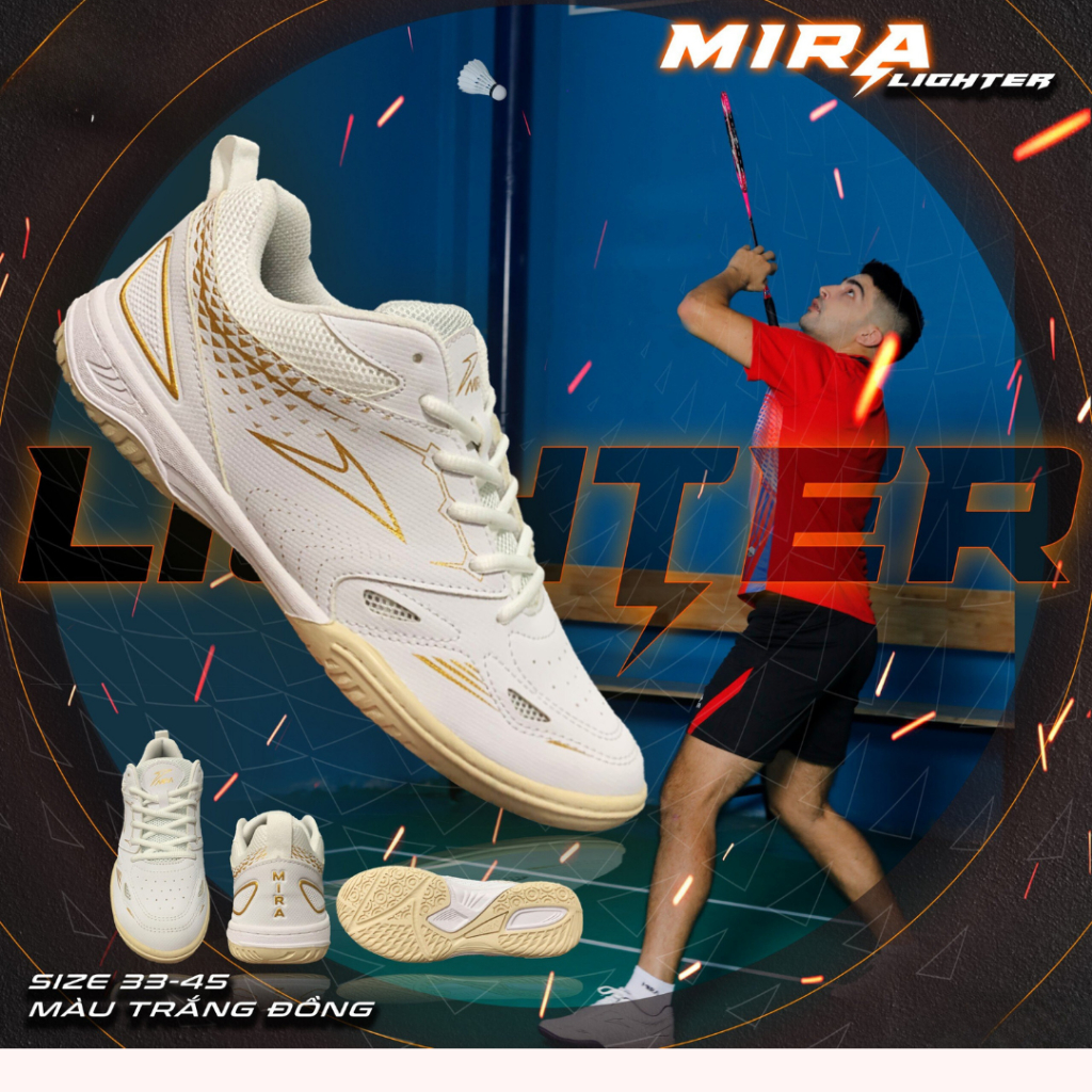Giày cầu lông, bóng bàn, chính hãng MIRA LIGHTER siêu nhẹ đế eva chống trượt tặng vớ dệt Merci Sport Thời Trang Center