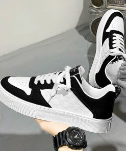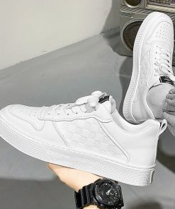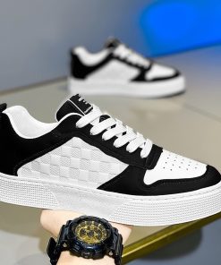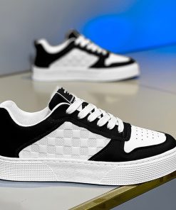 Giày Nam Sneaker thể thao Trắng Viền Đen Kẻ ô Da Pu mẫu mới đẹp Thời Trang Center