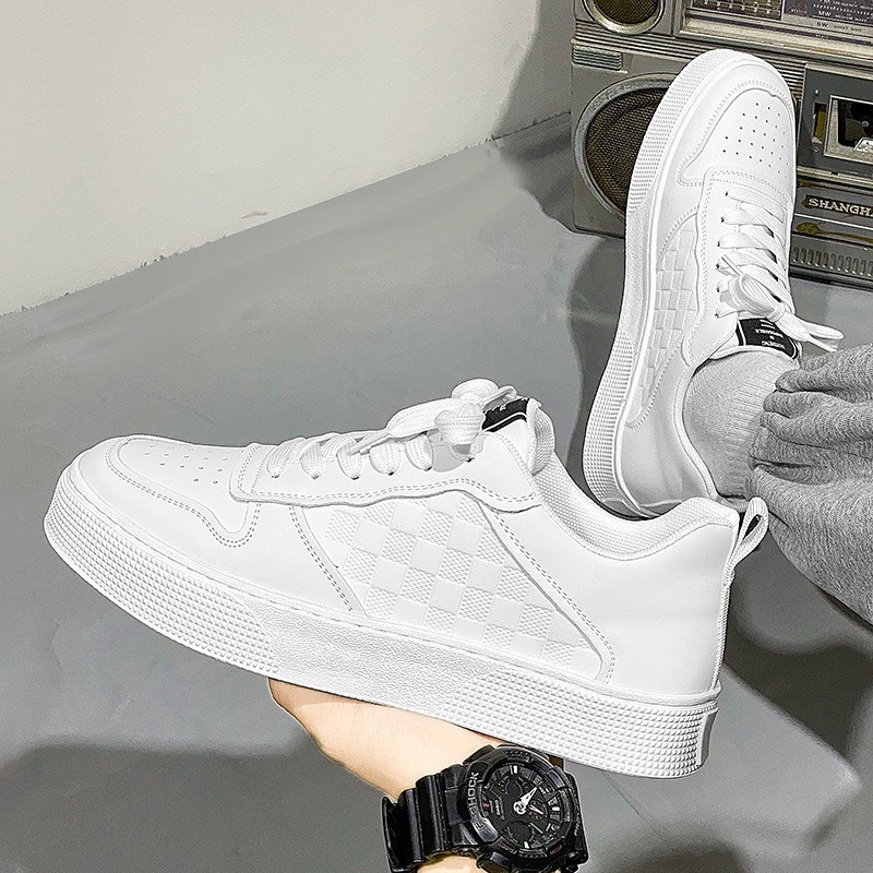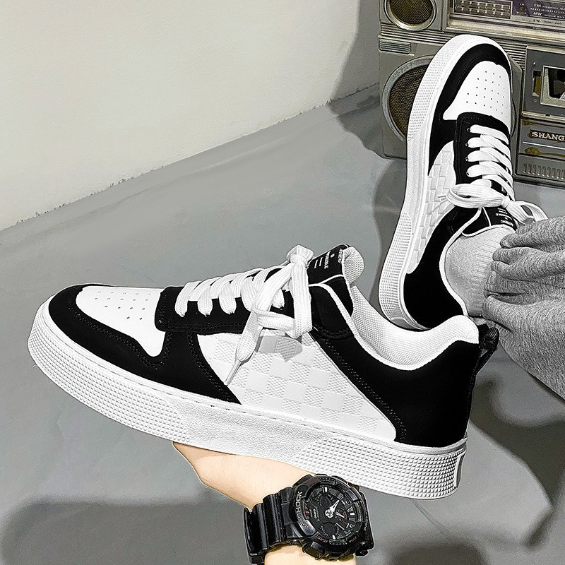 Giày Nam Sneaker thể thao Trắng Viền Đen Kẻ ô Da Pu mẫu mới đẹp