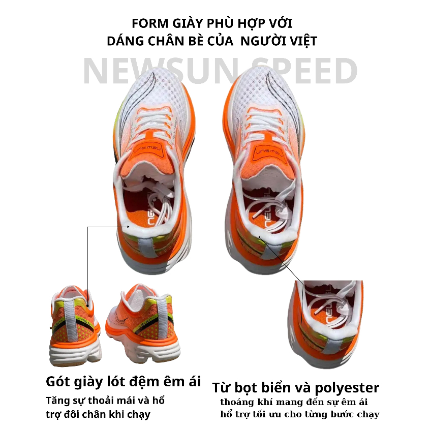 GIÀY CHẠY BỘ NEWSUN 2024NEWSUN Được sản xuất bởi công ty NEWSUN, giày có kiểu dáng mạnh mẽ, là dòng giày thể thao được nghiên cứu dành cho việc tập luyện chạy bộ và vận động cao.