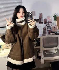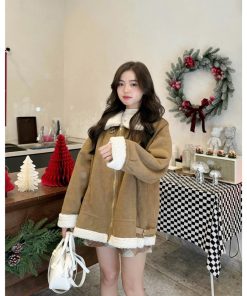 Sẵn [HÀNG L1] Áo khoác DA LỘN LÓT LÔNG CỪU CỔ BẺ HQ-thoitrangcenter