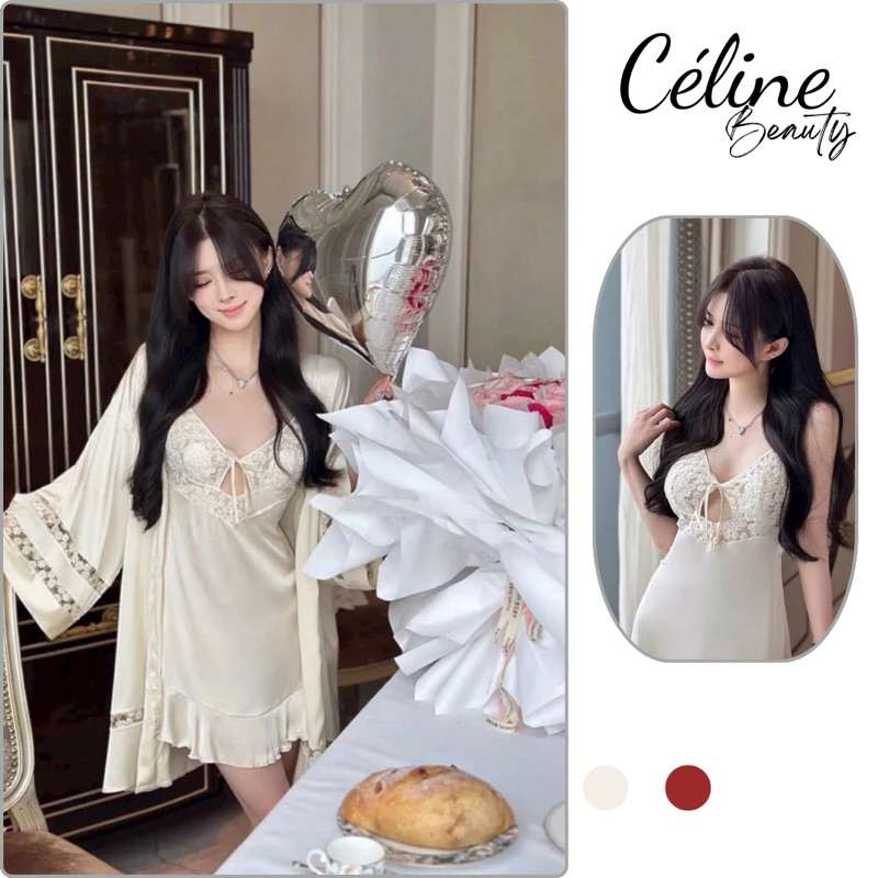 [Hoả tốc-Che tên] Set Váy Ngủ 2 Dây Quảng Châu Kèm Áo Choàng In Hoa Thời Trang Center