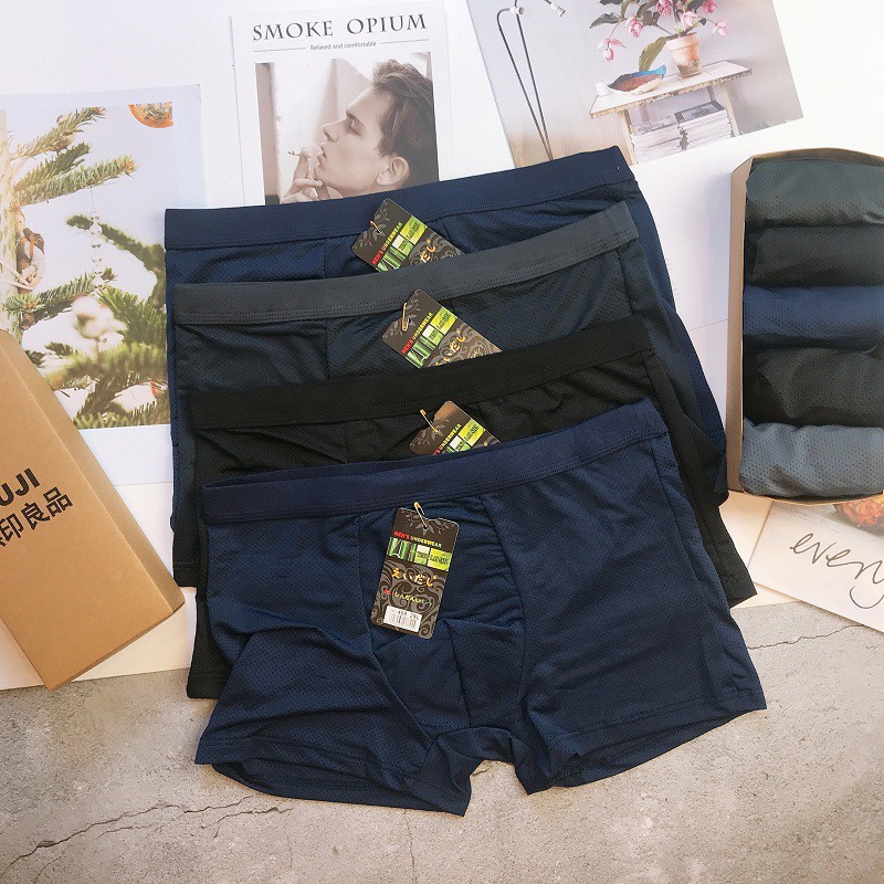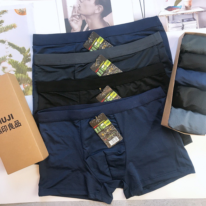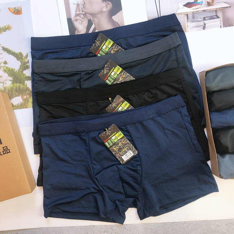 Hộp 4 Quần Xì Sịp Nam Thông Hơi Lỗ Nhỏ Siêu Mịn – Quần Lót Nam Boxer Dạng Lưới cao cấp NO409 Thời Trang Center