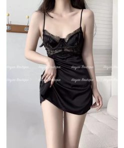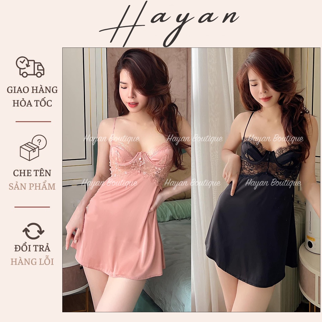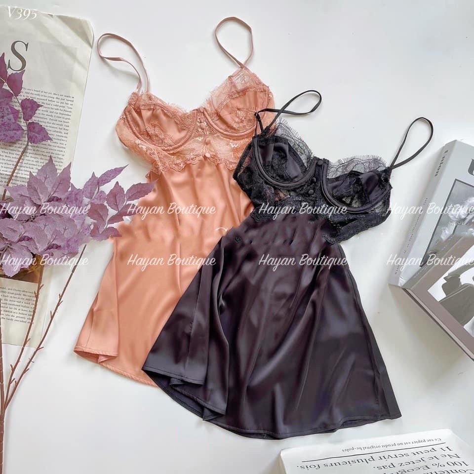 HT241 Váy ngủ sexy phối ren ngực sang chảnh kèm GỌNG, đầm ngủ lụa tôn dáng gợi cảm HT241 Thời Trang Center