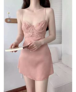 Váy ngủ sexy phối ren ngực kèm GỌNG, đầm ngủ lụa mặc nhà gợi cảm HT241