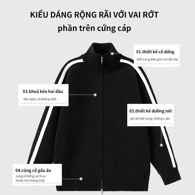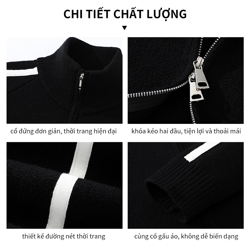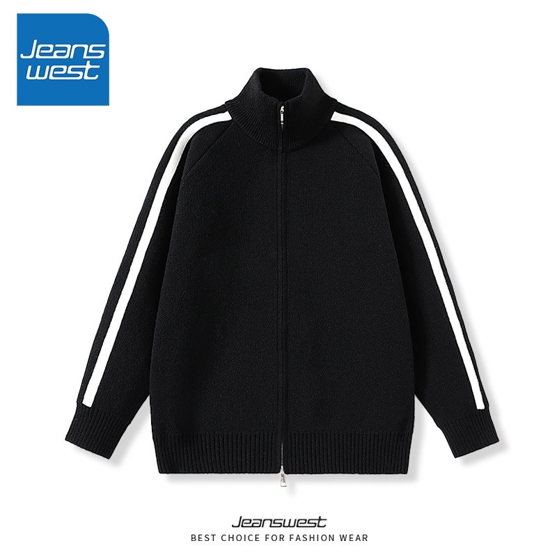 Jeanswest Áo khoác nam sọc dày cổ đứng thương hiệu thời trang mùa thu đông, kiểu dáng rộng, thoải mái, áo khoác thể thao, cardigan Thời Trang Center