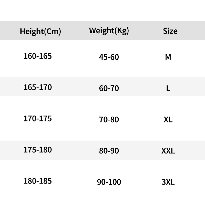 Chiều cao 180-185cm, Cân nặng 90-100kg, Khuyến nghị 3XL
