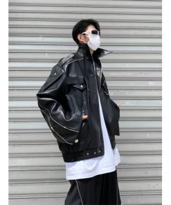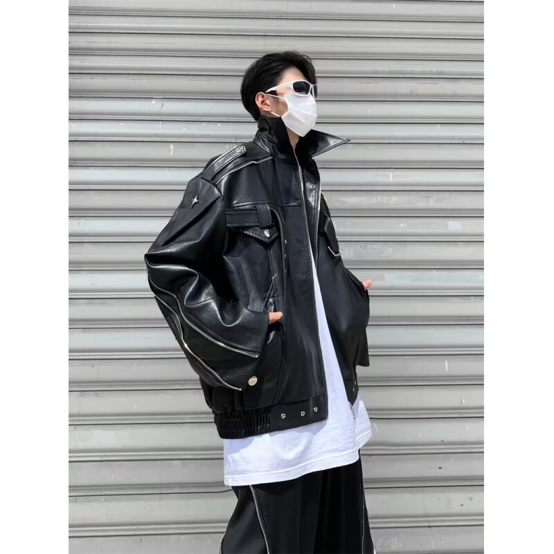 Labiocos Rãnh Nam Retro Áo Khoác Da Ngắn Mới Thu Đông Mỹ Retro Cao Cấp Thiết Kế Đường Phố Áo Dài Tay Thời Trang Center
