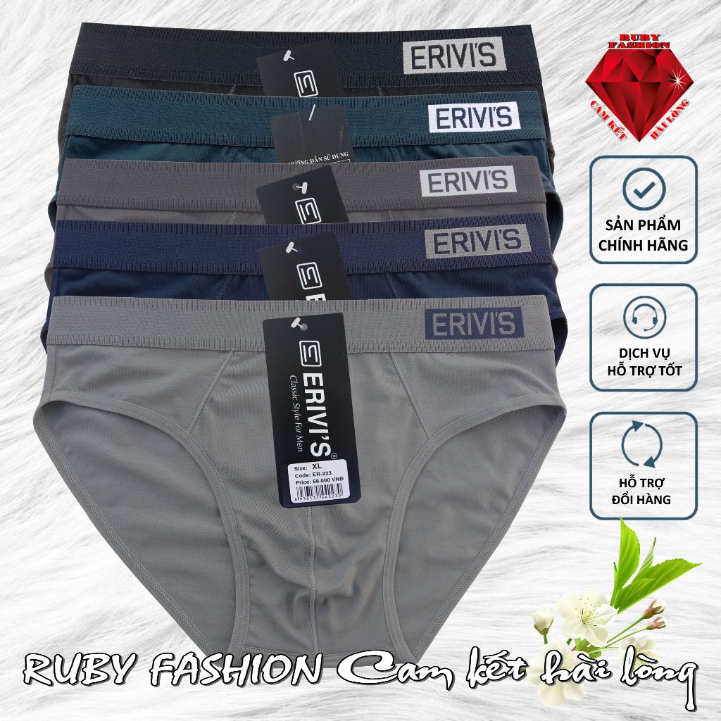 [Mẫu mới] Bộ 5 quần sịp nam cao cấp Erivis, chất liệu Cotton Bambo, co giãn đa chiều, Hàng Việt nam chất lượng cao Thời Trang Center