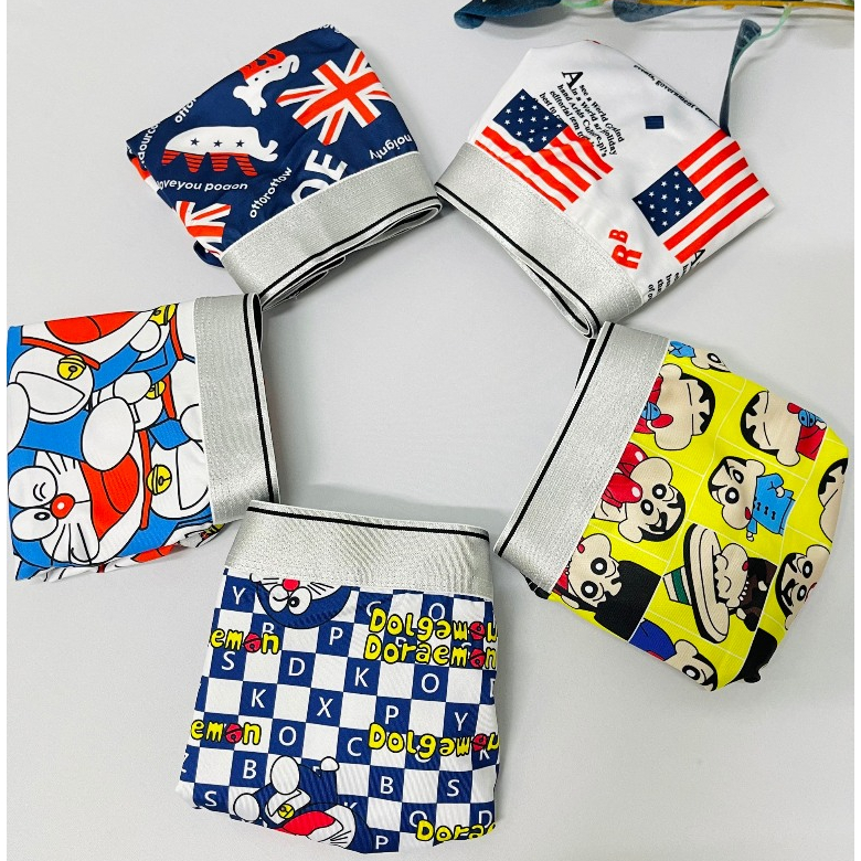 Hộp 5 quần lót,quần sịp đùi họa tiết nam thun lạnh cao cấp co dãn 4 chiều, hút mồ hôi doremon #KINGBOXER