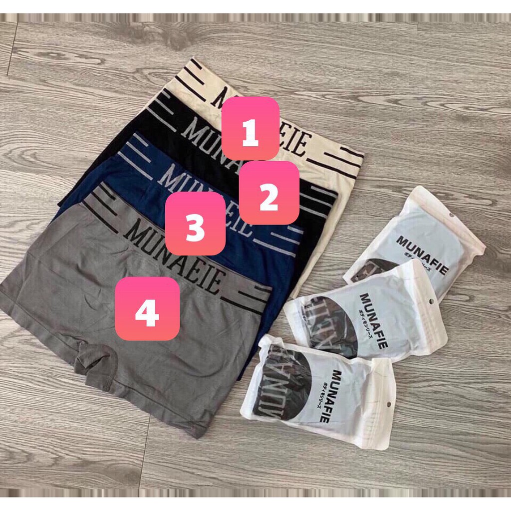 Quần Sịp Nam Đùi Cotton, Quần Lót Nam Munafie Dệt Kim Co Giãn 4 Chiều mỗi quần 1 Túi Zip Sang Trọng
