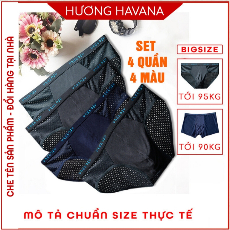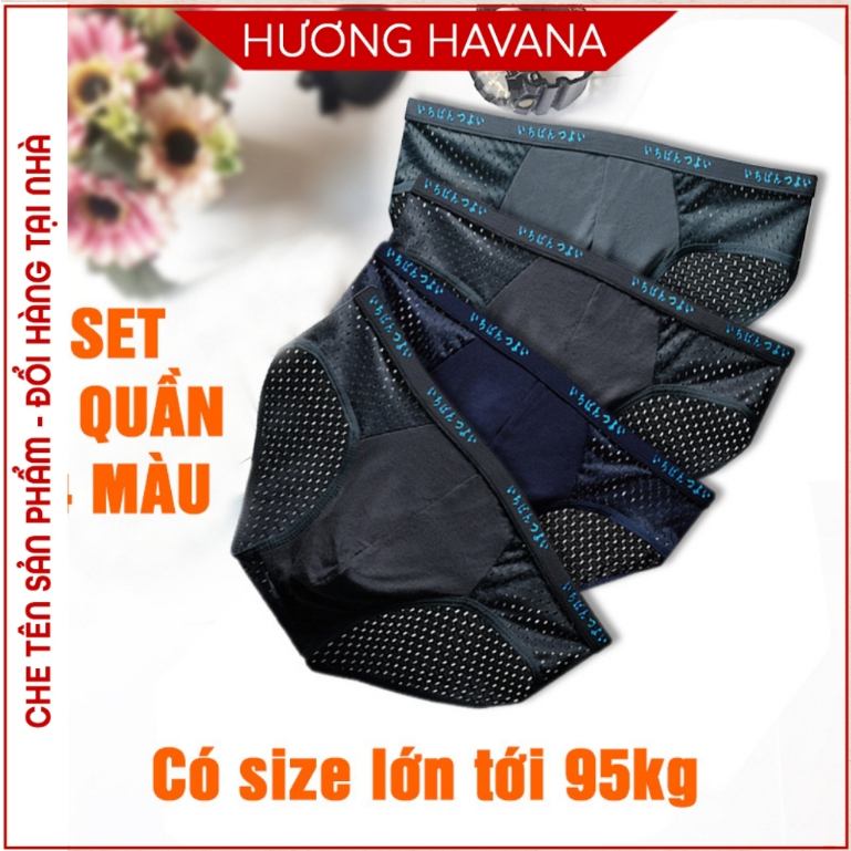Set 4 quần lót nam thông hơi – quần sịp nam tam giác đùi nhật bản – có size lớn MLQ01 Thời Trang Center