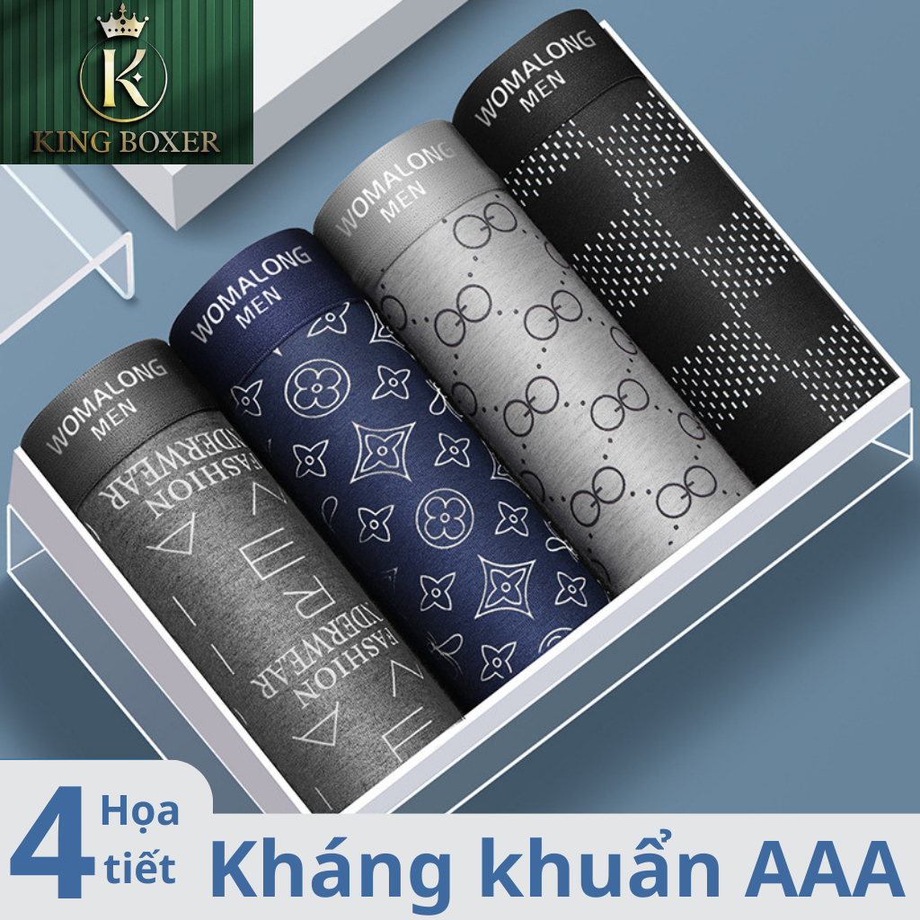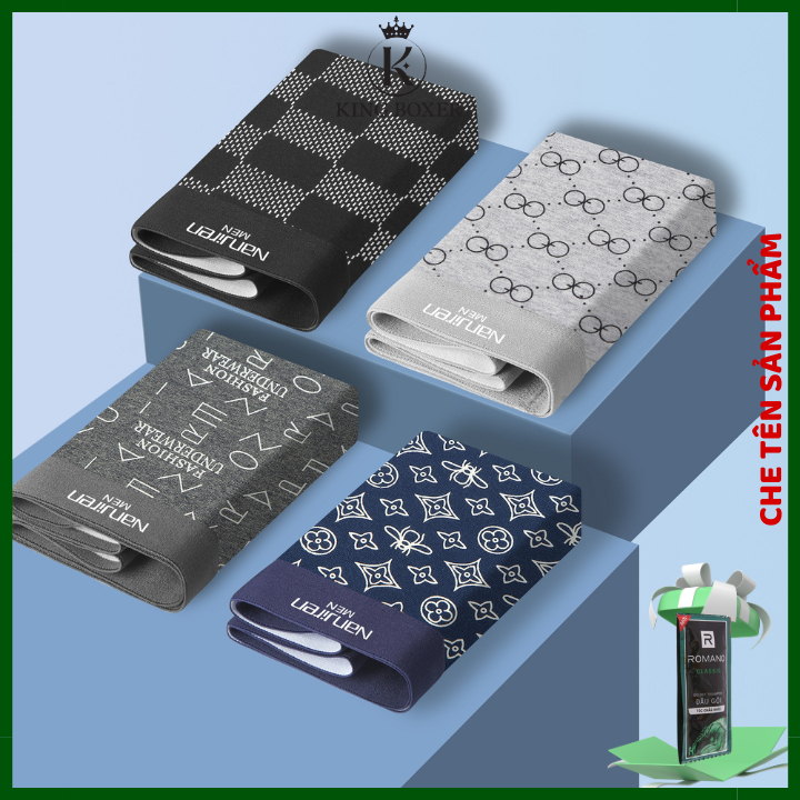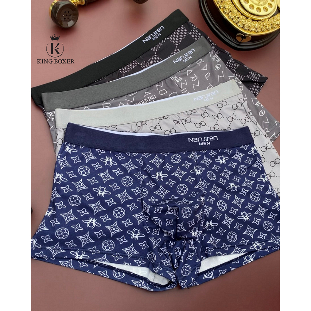 Sẵn Sét 4 quần sịp nam boxer quần xì nam cotton co dãn thấm hút mồ hôi sịp đùi họa tiết sang chảnh Nanjiren-01 Kingboxer-thoitrangcenter