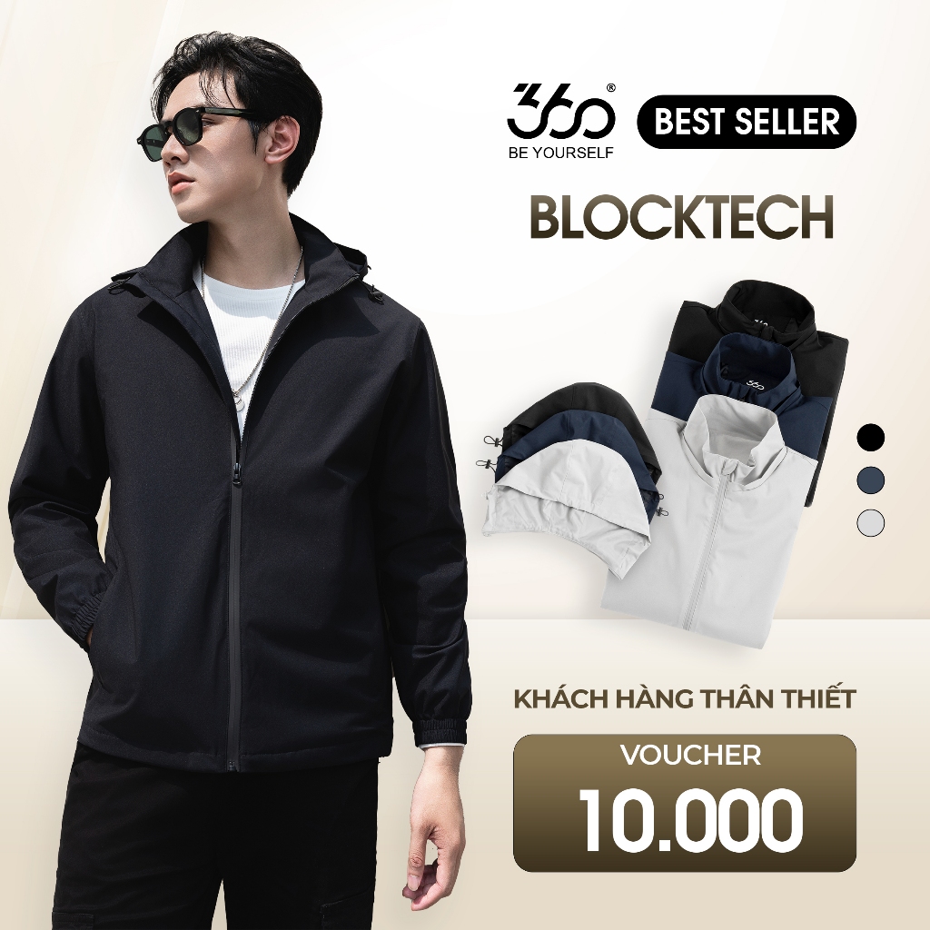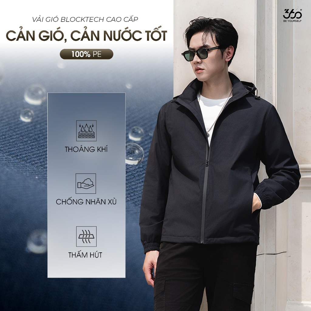 ÁO KHOÁC GIÓ NAM KHÓA KÉO MƯỢT MÀ, BLOCKTECH 2 LỚP 360 BOUTIQUE ÁO DÙ CAO CẤP, CHỐNG NƯỚC, MŨ THÁO RỜI – AKGTK501
