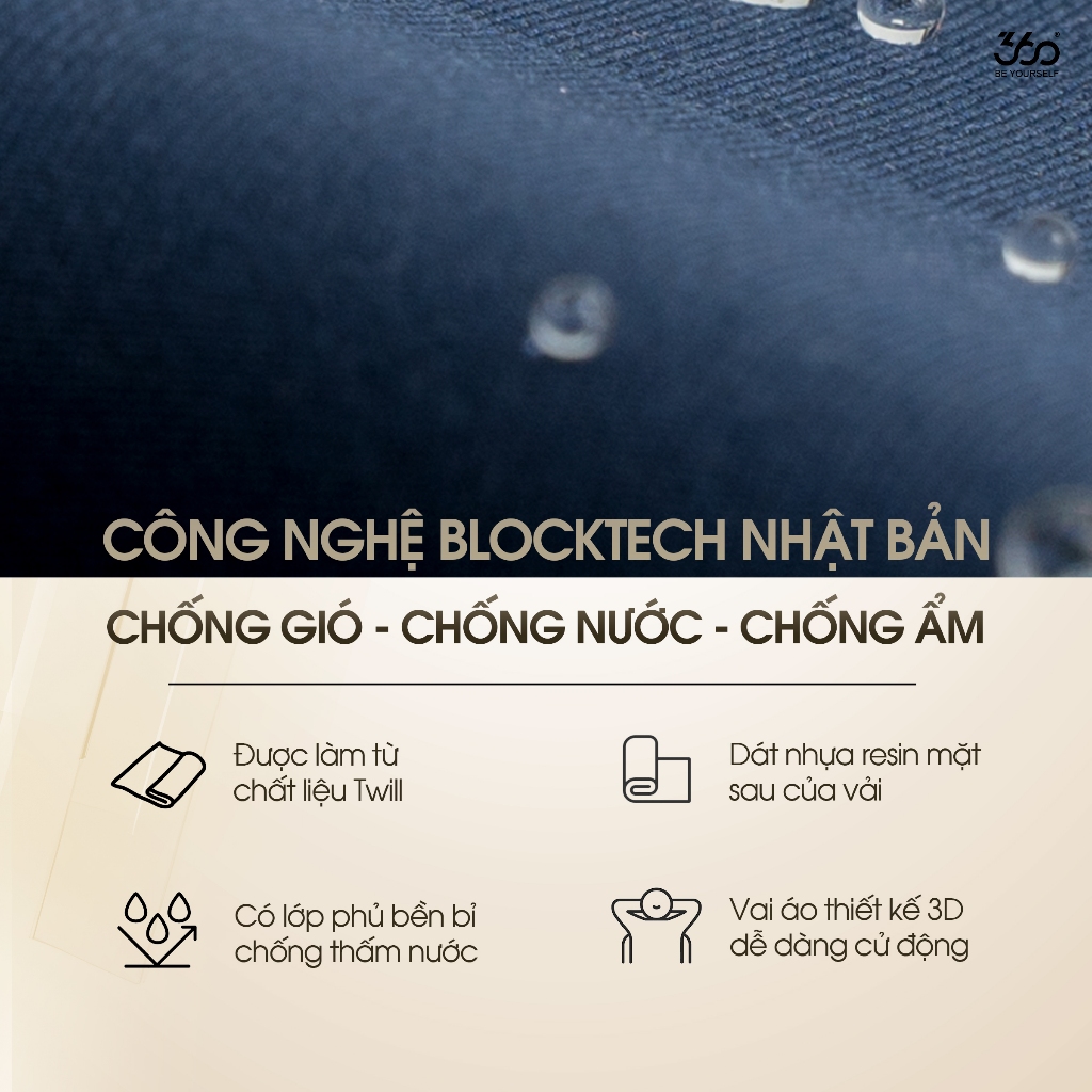 – Chất liệu: Vải blocktech (gió trượt nước)