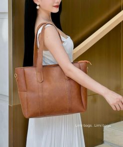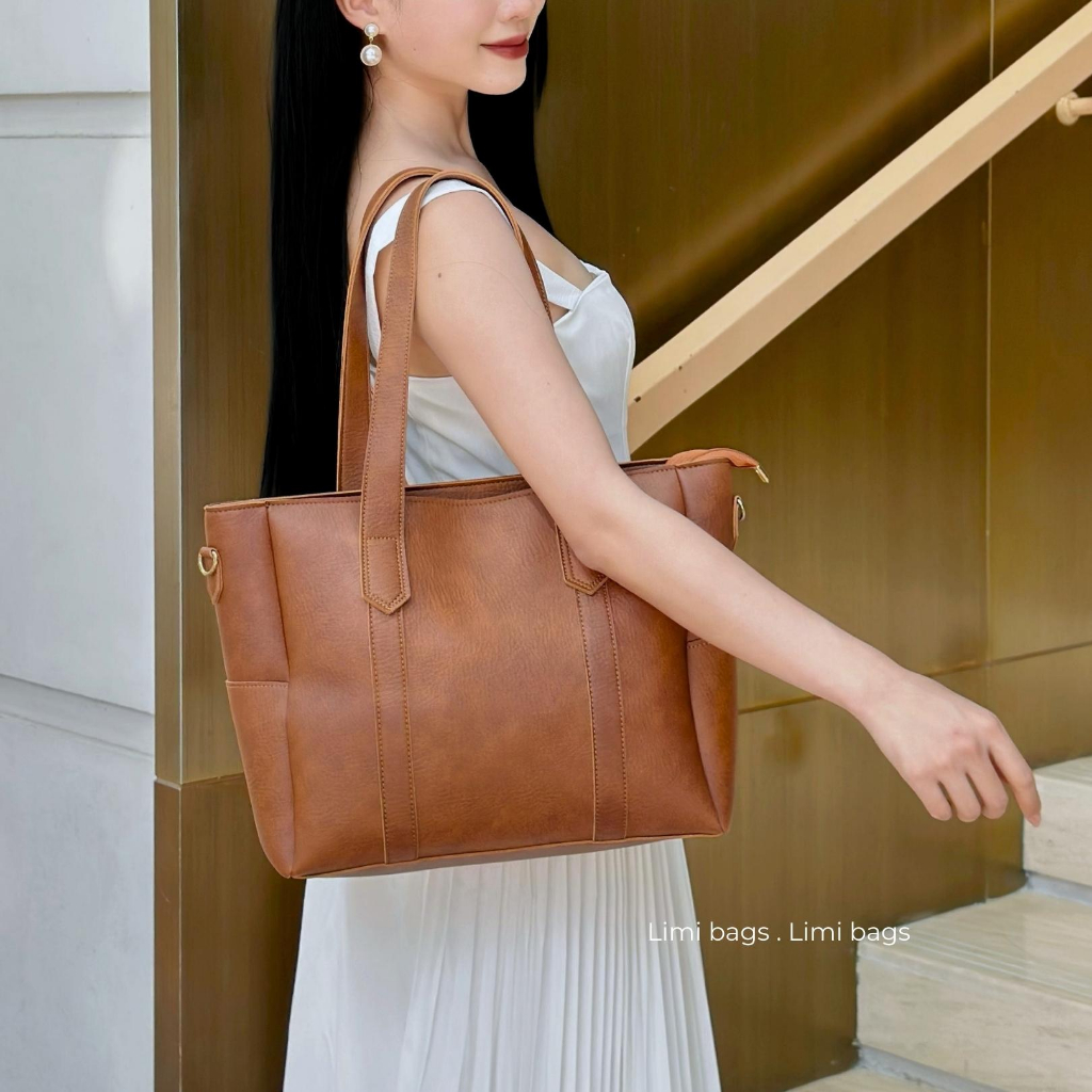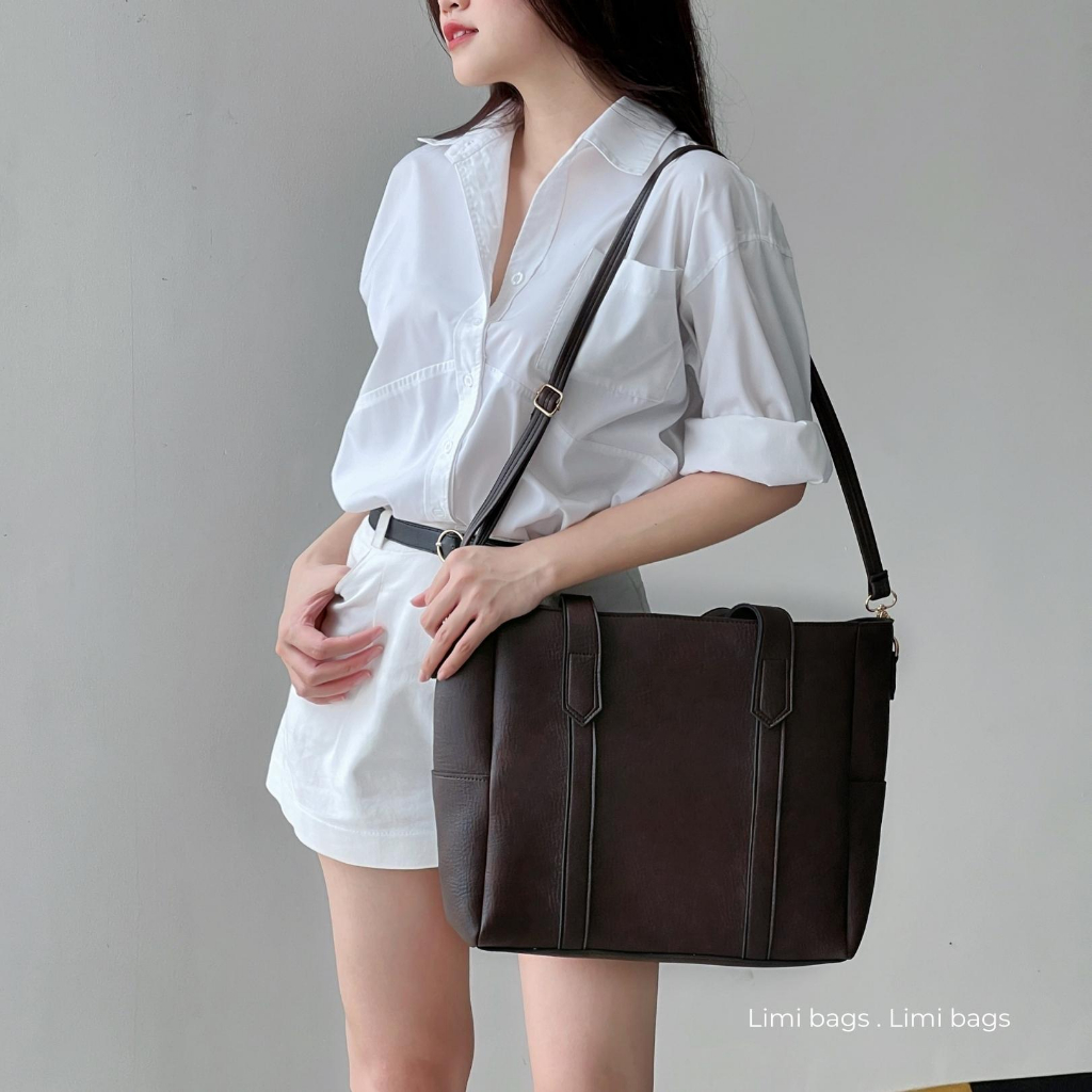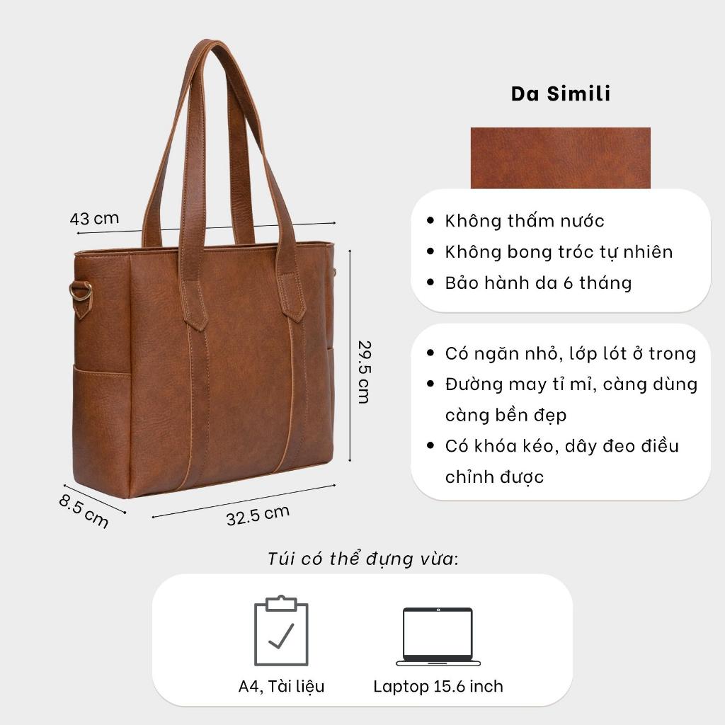 Sẵn Túi Da công sở nữ đựng laptop xách tay size lớn đựng Laptop 15.6 inch A4 tote đẹp LEON Limi bags-thoitrangcenter