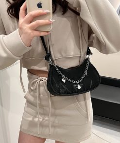 Túi đeo chéo nữ thời trang PALAMA túi xách tay da nhung phối dây xích size 22cm sang chảnh K239