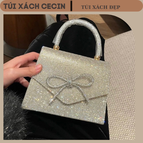 Sẵn Túi xách cầm tay đính nơ Bling tiệc tùng sang trọng . Túi xách đi tiệc trẻ trung-thoitrangcenter