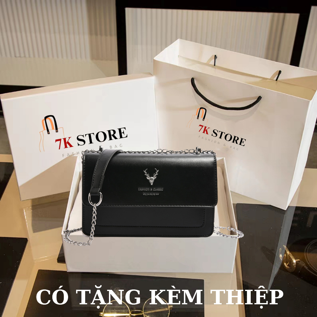 Sẵn Túi xách nữ đeo chéo dáng vuông fullbox đeo vai dây xích bạc 7K STORE TX02-thoitrangcenter