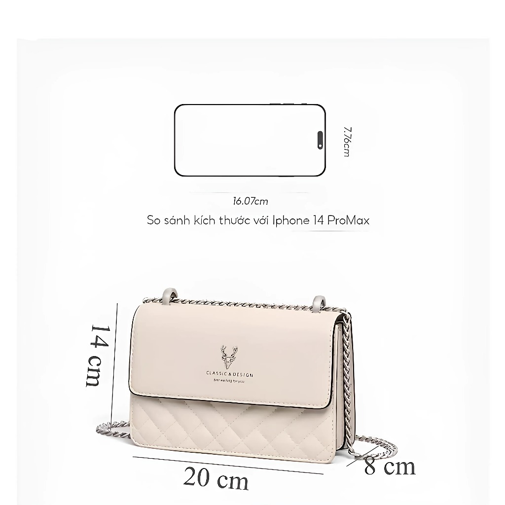 HƯỚNG DẪN SỬ DỤNG : Túi xách nữ đeo chéo vai dáng vuông dây xích fullbox màu đen trắng 7K STORE TX39